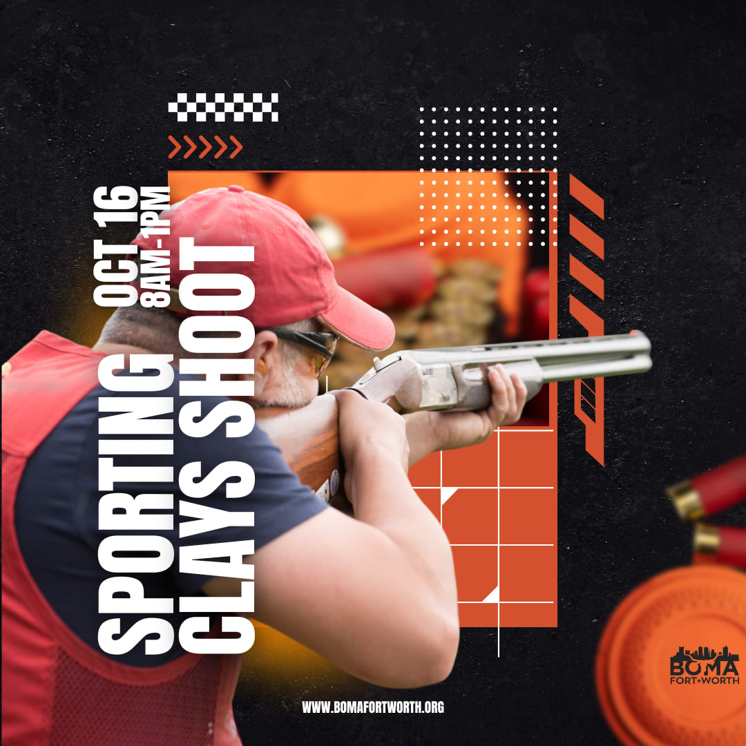 Registration is open for BOMA Fort Worth’s annual Sporting Clays Shoot! The event is at Defender Outdoors Clay Sports Ranch on Wednesday, October 16, 2024, to shoot sporting clays. Experienced and novice shooters are welcome and encouraged to attend.